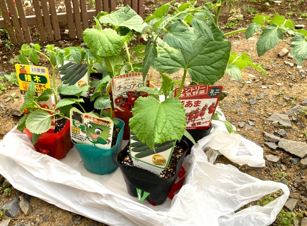ということで、ド定番のトマト・キュウリ・大葉を植えていきます!