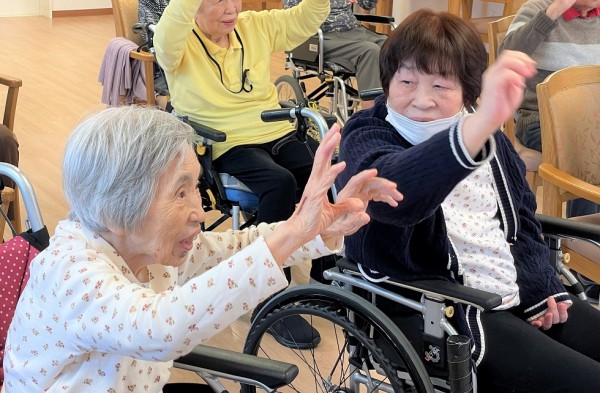 ご利用者様同士の交流も促進されたようで、お互いの動きを確認しあう場面も。