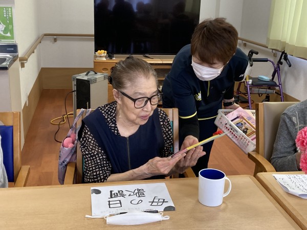 今回のプレゼントはスタッフお手製の写真入れとカーネーション♪