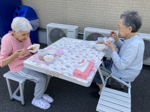 先日の2階フロアに続き、穏やかなお天気で気持ちいい日なので外でランチを召し上がっていただきました。