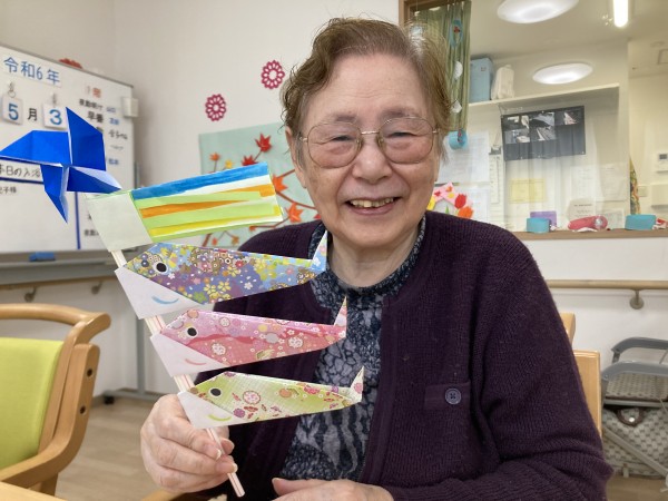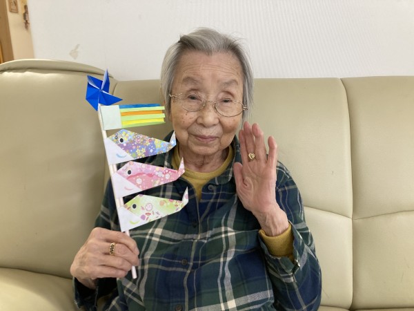 兜をかぶったり、こいのぼりで記念撮影をして季節を感じていただきました☀