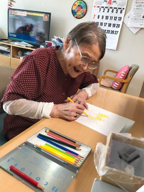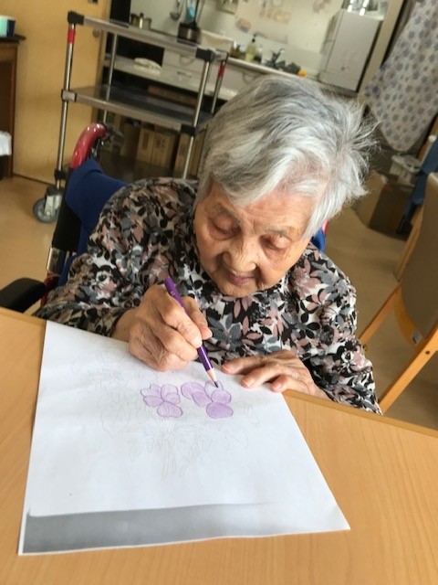 今日は季節のお花の絵をご用意し、皆様一緒に塗り絵をはじめました!