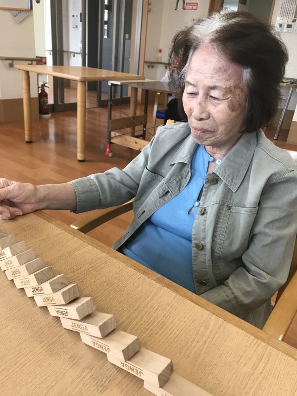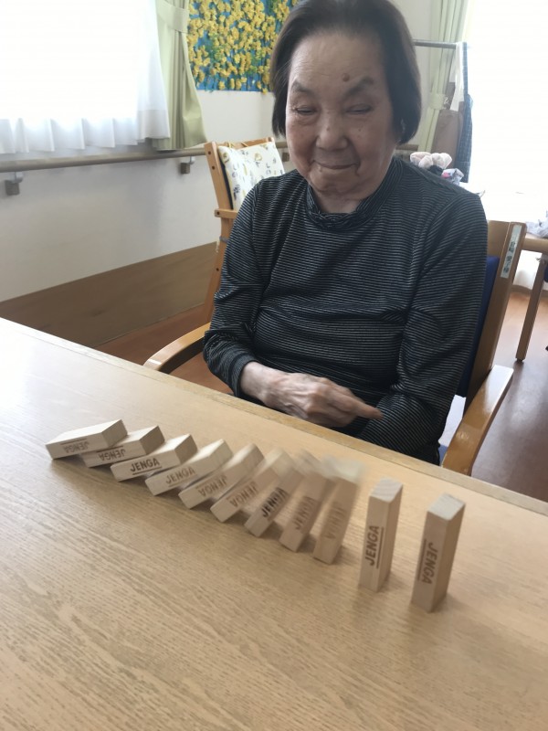 今日のレクではジェンガの駒を使ってドミノ倒しにチャレンジ♪