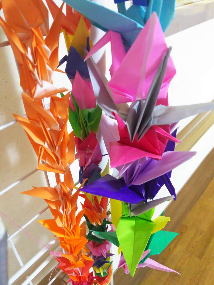 今は、大小色柄様々な折り紙で千羽鶴を作成しています。
