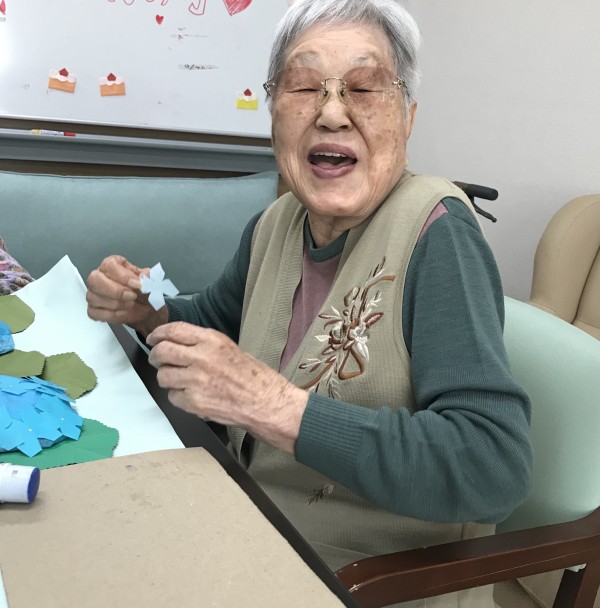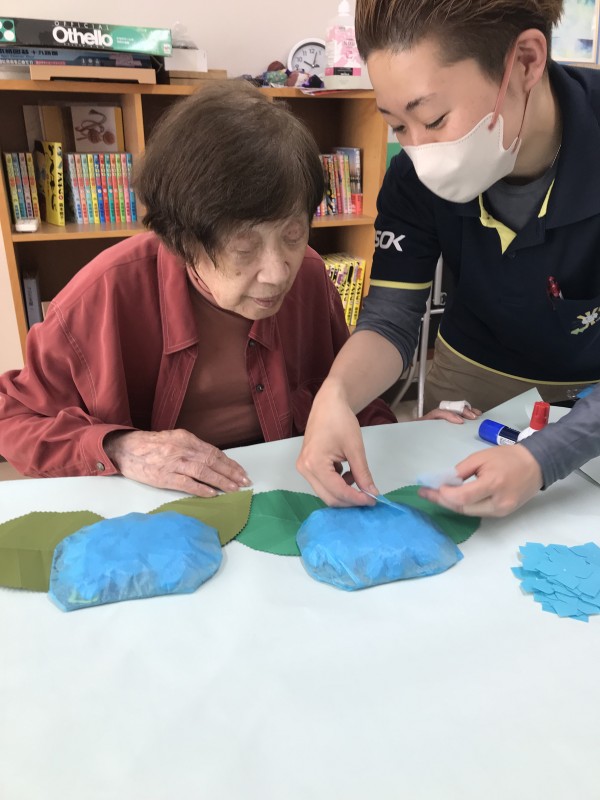 お花紙で作った土台に花びらを付けていきました♥