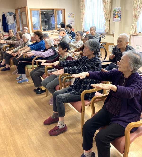 談笑を交えながらの体操(/・ω・)/♪