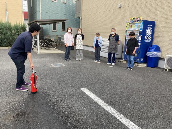 消火器の使い方、設置場所、避難場所等の確認をして無事訓練は終了です。