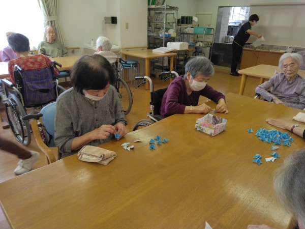 小さな折り紙を開く作業は、手指の体操にもなります!