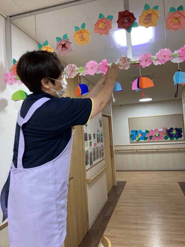 皆んなでコツコツと作成した紫陽花の花が完成しました!