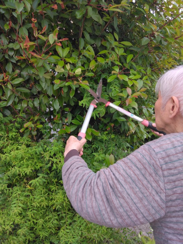 スタッフちょっと休憩のつもりでK様の近くに腰掛けたところ、「私で良ければ」とおっしゃり立ち上がってくださいました!伐採を手伝ってくださると言うのです!!!