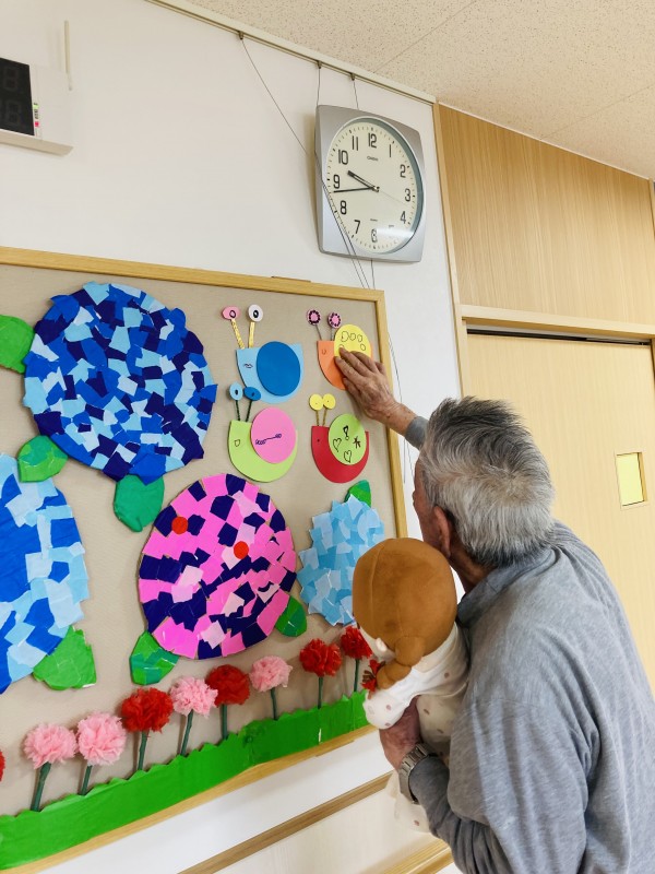 カタツムリとカエルも登場して可愛らしい飾りが出来上がりました〜(๑˃̵ᴗ˂̵)
