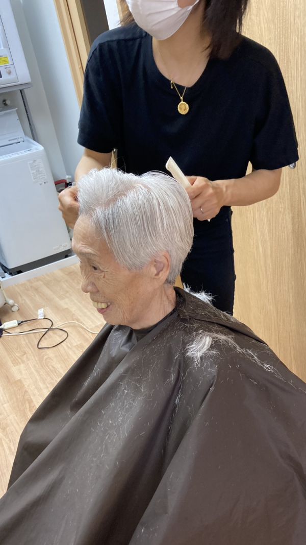 今日は2か月に1回の訪問理美容の日です♪段々と暑くなって来た今日この頃、皆さんさっぱりとカットして頂きました♪(๑ᴖ◡ᴖ๑)♪