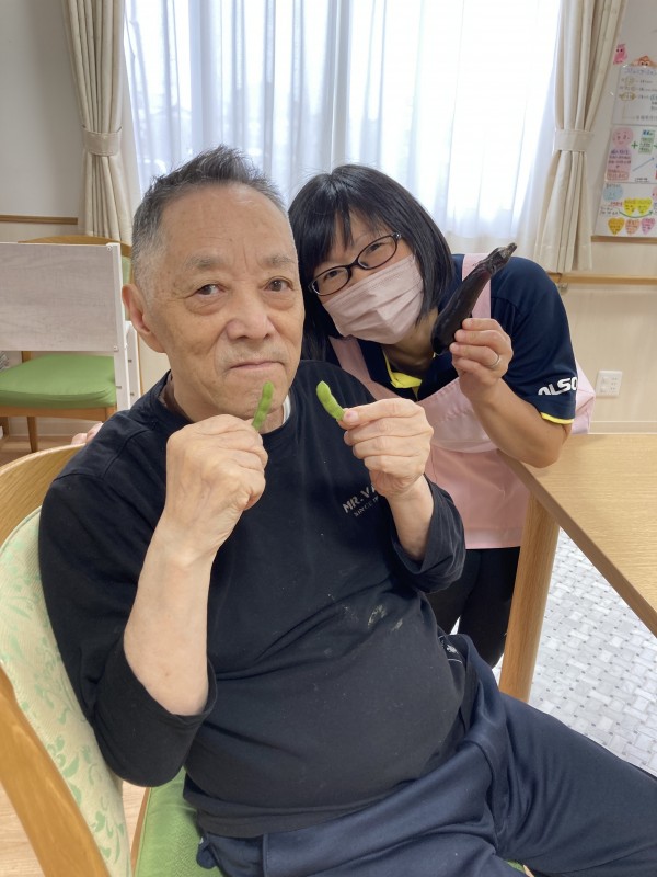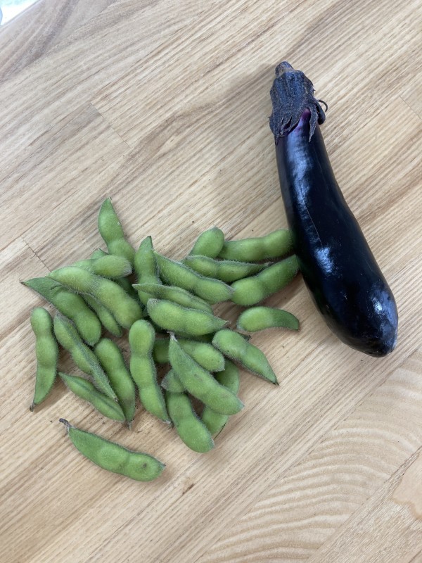 ナスと枝豆収穫しました〜♪٩(^‿^)۶