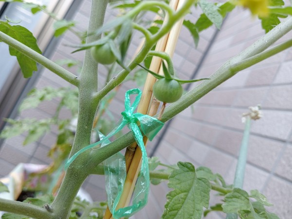 1階テラスで育てているトマトが少しずつ大きくなってきています(o^―^o)