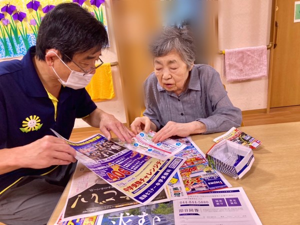 折り紙の箱が作れなくて困っていたスタッフに、ご利用者様が声を掛けて下さっていました。