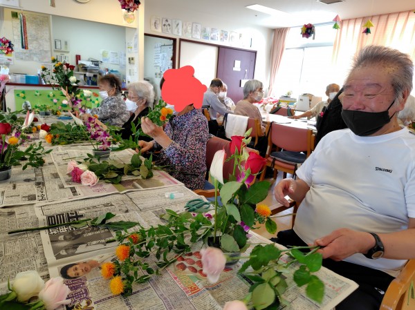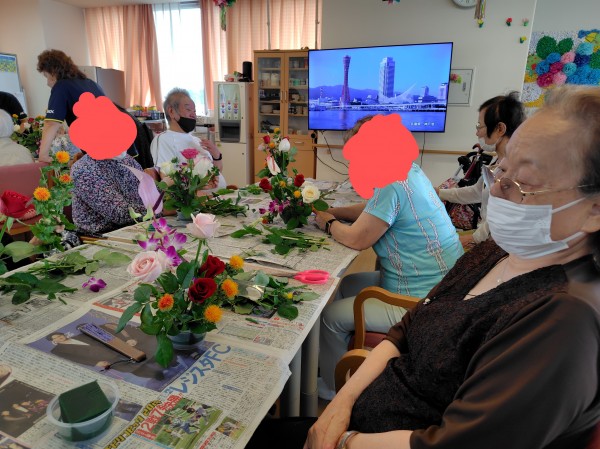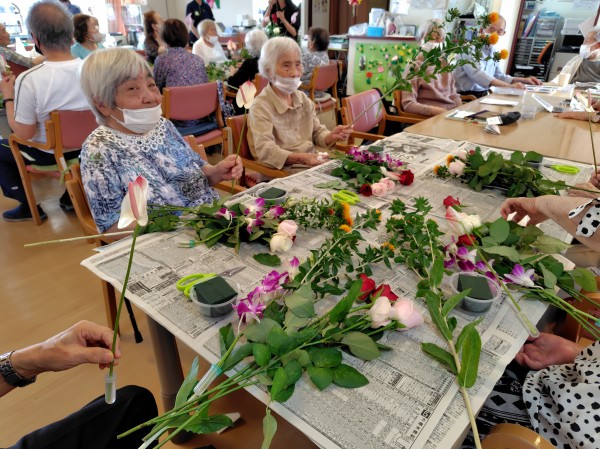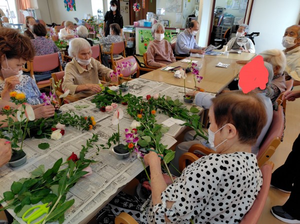 今月も月1のイベント、フラワーアレンジメントを行いました!
