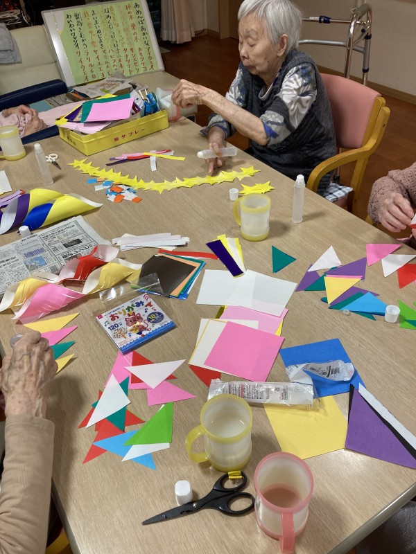 もうすぐ七夕です!毎年恒例七夕の飾りをみなさんで作ります!