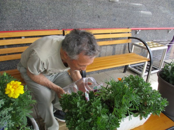 先週植えた花の水やりをH様がお手伝いしてくださいました(*^^*)