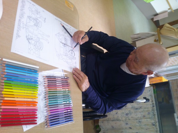 本のお手本を見ながら色鉛筆でご自分の塗り絵を作られました。
