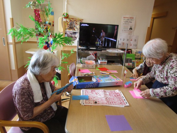 折り紙で飾りを作ったり、短冊に願い事を書いたり、ワイワイと楽しそうです(^^♪