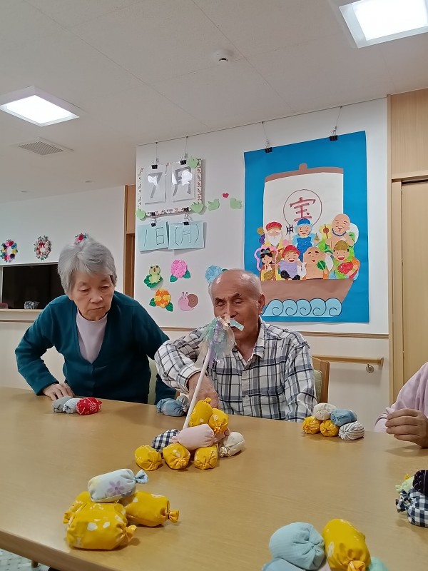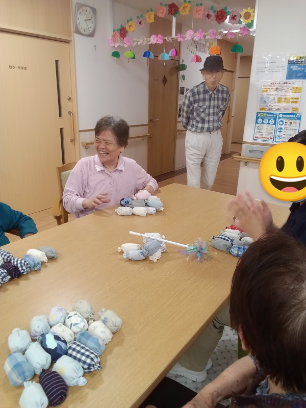 お手玉棒倒しでは、棒が倒れないように慎重に慎重にお手玉を一つずつ取っていきます。棒が斜めになるとヒヤヒヤドキドキです(*_*)