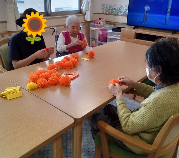 お花紙を丁寧に広げて可愛いお花をいっぱい作っていきます♪