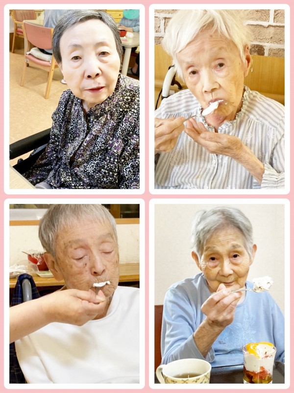 グループホームみんなの家大宮三橋 3階おやつ作り♪みんな大好きなフルーツパフェを作りました♪