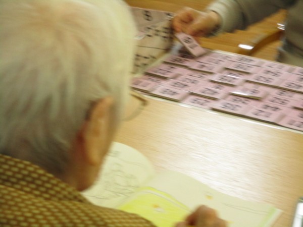 漢字が書かれた表に1枚ずつ漢字のピースをのせていきます。