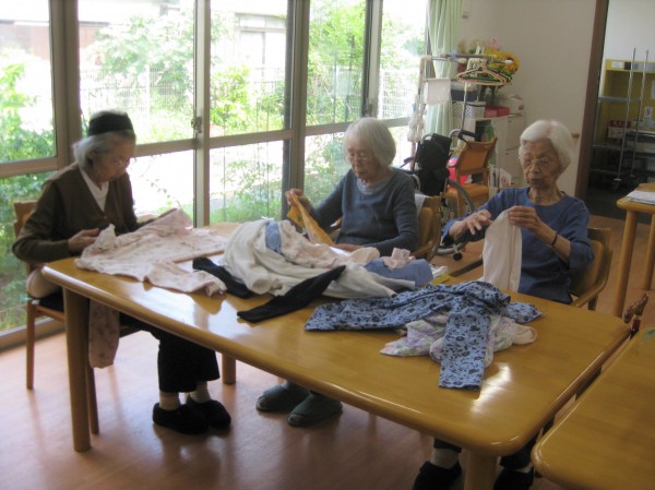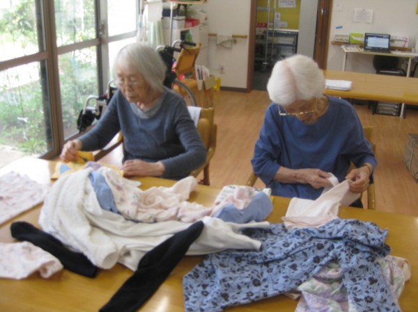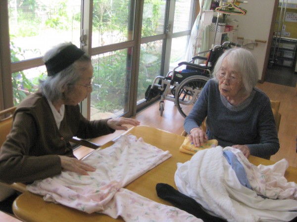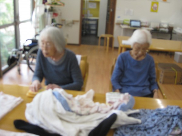 お手伝い(お洗濯物畳み)のご様子です( ^ω^)・・・ お喋りされながらお手伝いしています。
