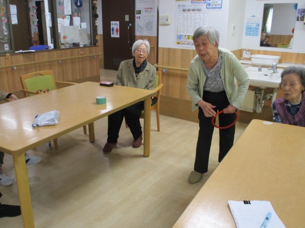 頭を使ったので、次は、身体を使いましょうと、輪投げゲームに挑戦です。