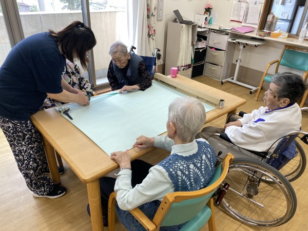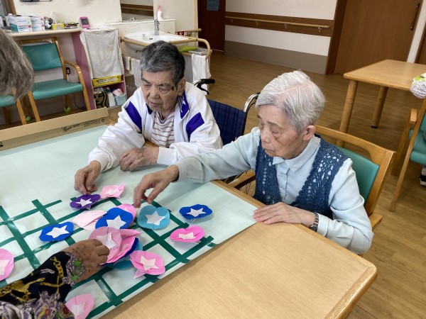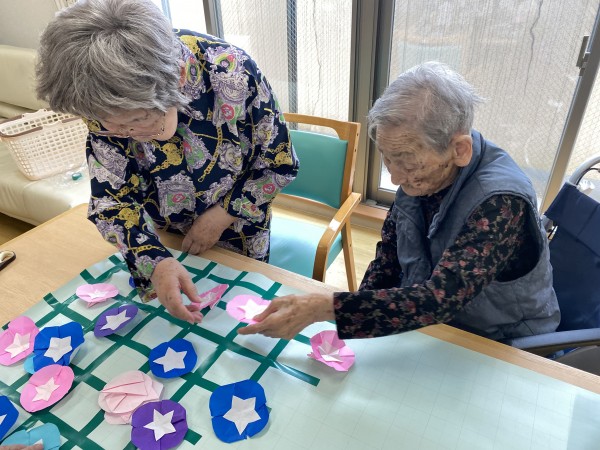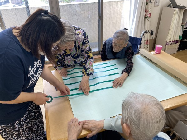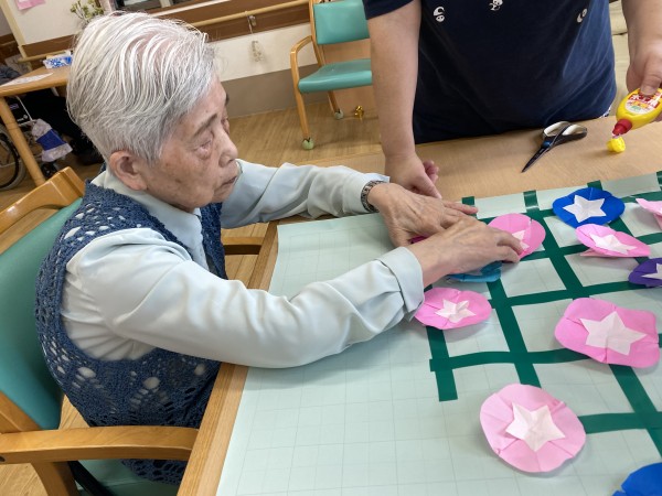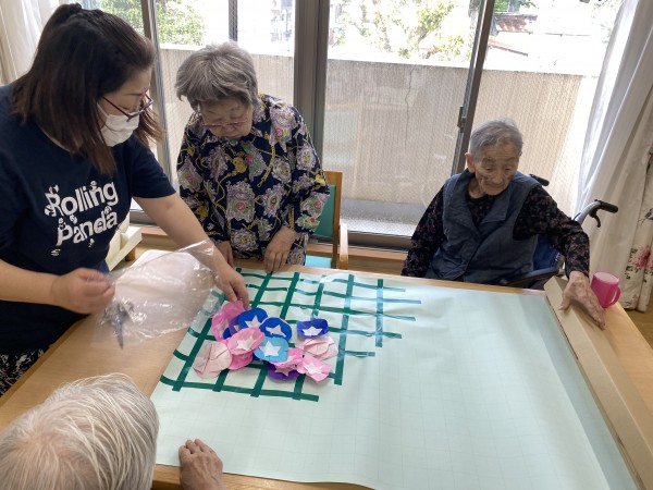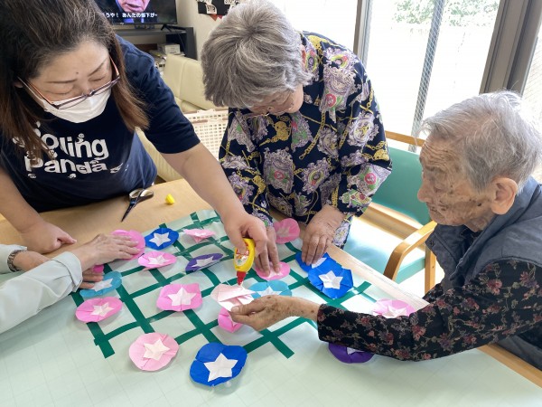 K職員が、色々考えてくれ朝顔の壁画制作を開始いたしました。