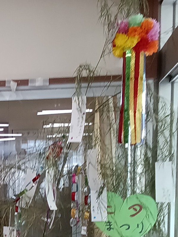 笹の葉に色とりどりの飾りつけをして、願い事を書いた短冊を付けましたよ(*^▽^*)