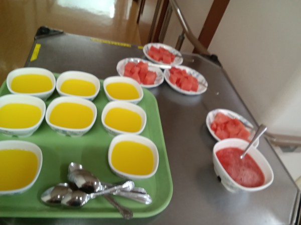 暑さと湿度を吹き飛ばすべく、おやつにスイカを食べていただきました(^^♪