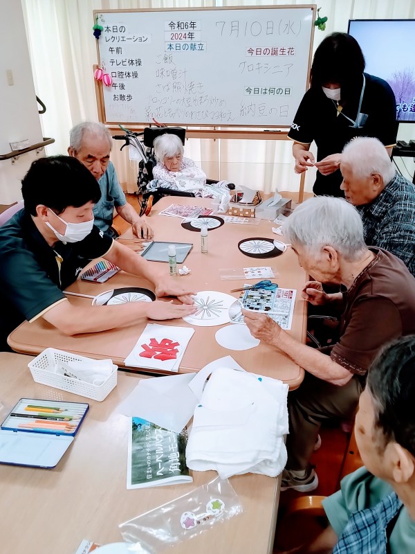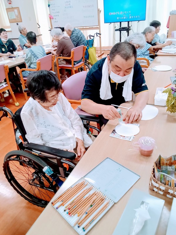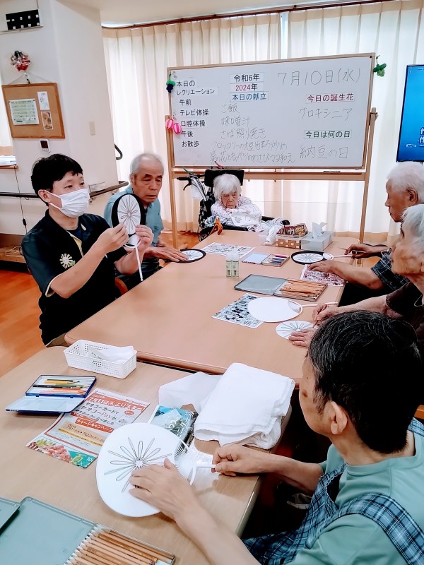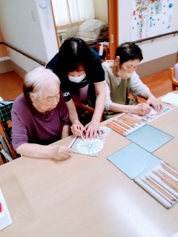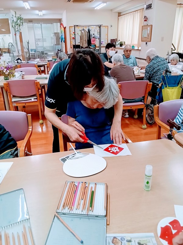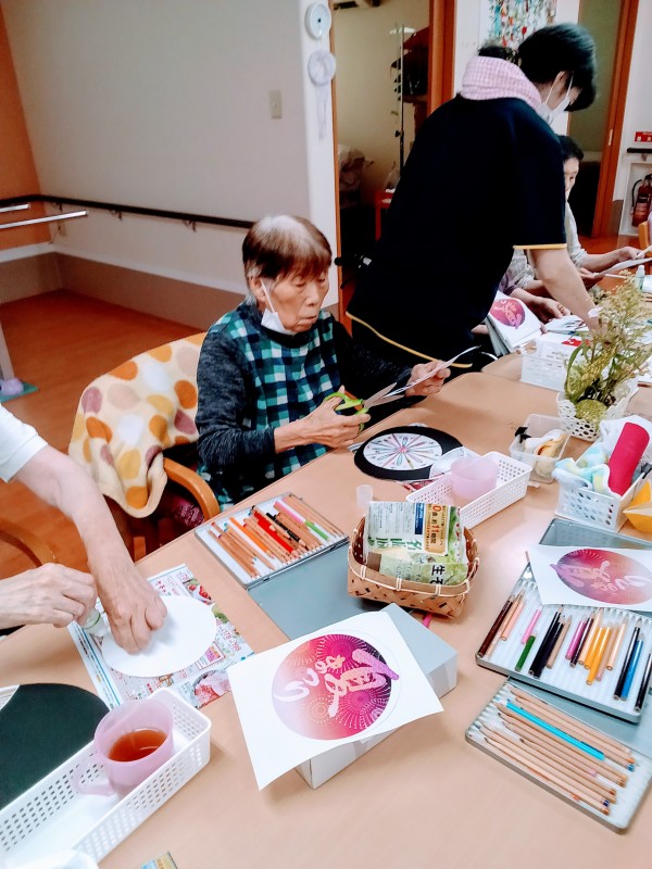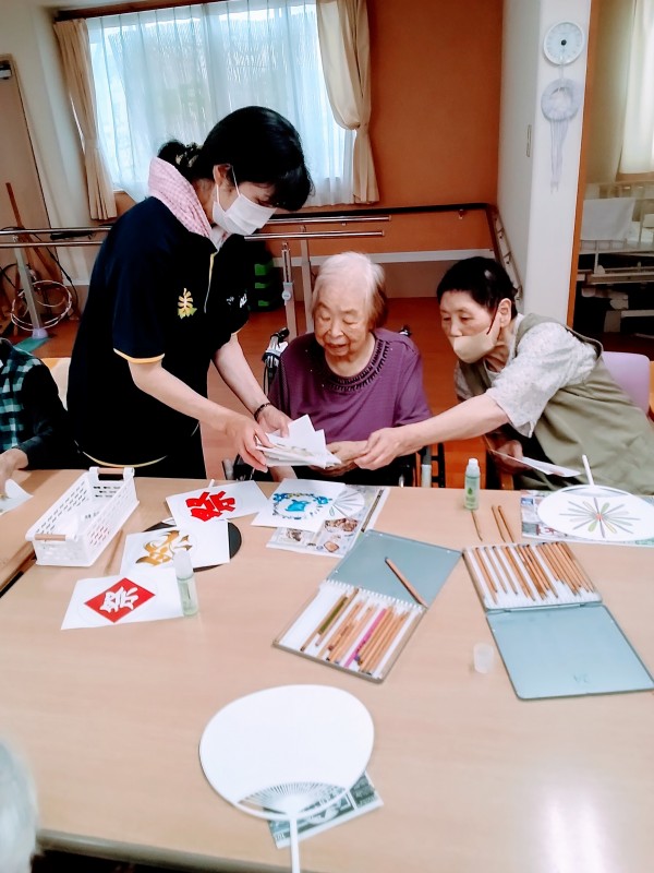 皆さん、完成した団扇を笑顔で喜んでおられました。