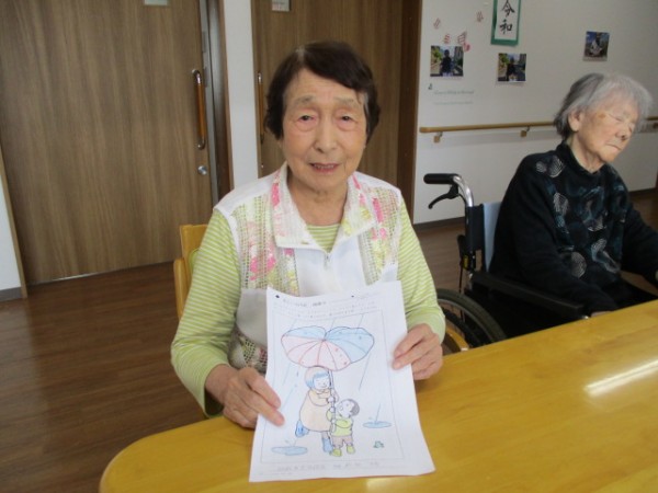楽しまれていました(*^_^*) 優しい絵に綺麗に仕上がりましたね。 今日は丁度雨降りだったので傘の絵を塗ってみました!!