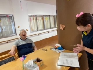職員が歌の出だしを歌い、それを聞いてご利用者様が最後まで歌いきるというゲームをしてました!10曲程挑戦してもらいましたが、見事パーフェクト♪さすがカラオケ好きのみなさんですね\(^o^)/