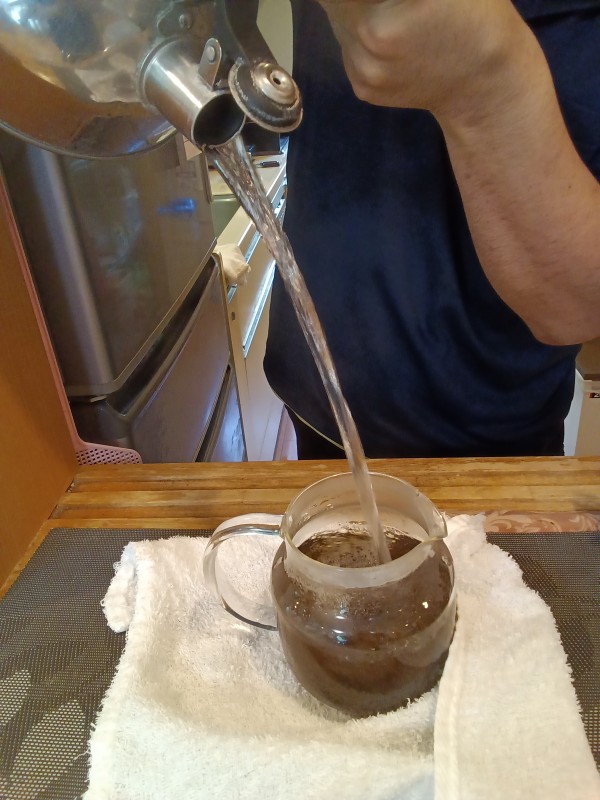 抽出用のお湯が沸くのを見計らって、ポットのお湯は捨ててしまいましょう。