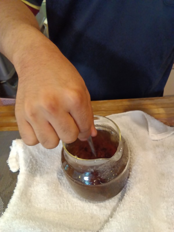 抽出がおわったら、ティースプーンでポットの中を1まわし。