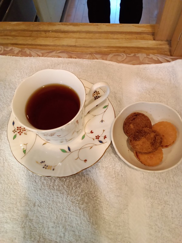 というわけで、本日のオヤツは本格的な紅茶とビスケットのセット。