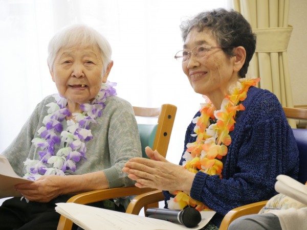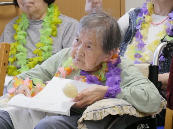 皆様が首にかけている“ハワイアンレイ”もご家族様が持ってきてくれたんですよ~♪