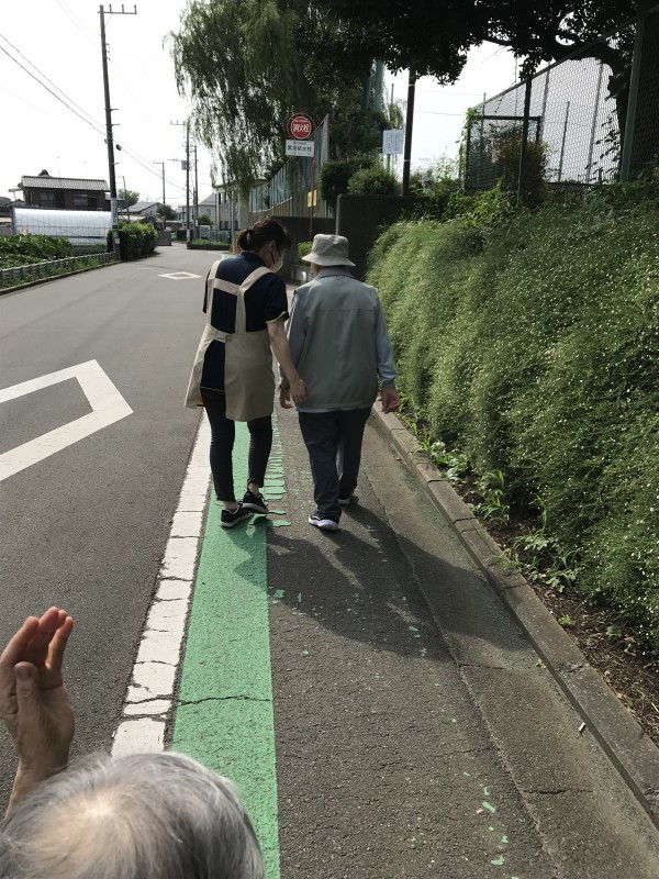 Y様は、行くぞ!と言わんばかりに前進されるので、スタッフが「もう少しゆっくり歩きましょう~」と話しています。