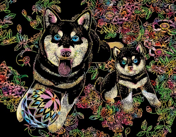ペンなどを用いて削る事で美しい絵が浮かび上がるという