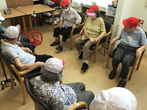 皆さん夢中になってくると椅子から落ちてしまいそうになってくるので、スッタフが声掛けしてしっかり手すりに掴まっていただいてゲーム続行です。