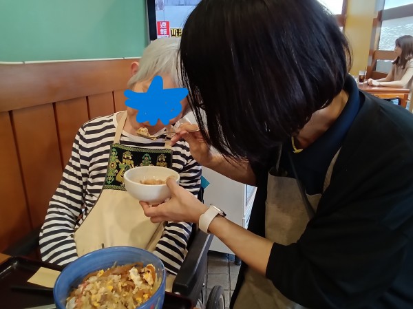 ご家族様が来て頂ける方は、ご利用者様の隣に座り一緒に召し上がりました(*^▽^*)