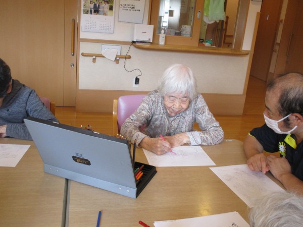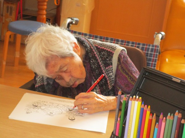 塗り絵は好きな方が多く、ちょっとした空き時間に行います。