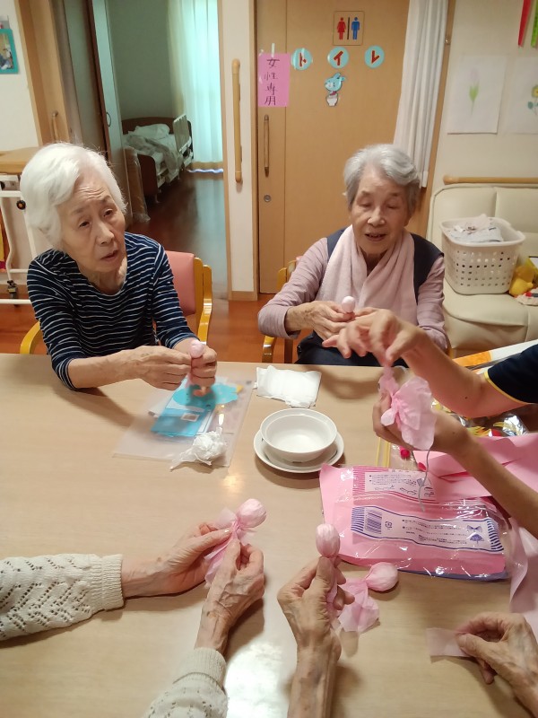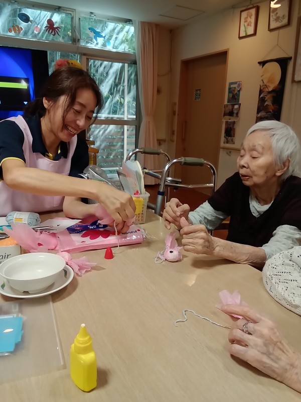 ピンクの可愛い金魚が出来上がり、みなさんユラユラ~揺らしたり