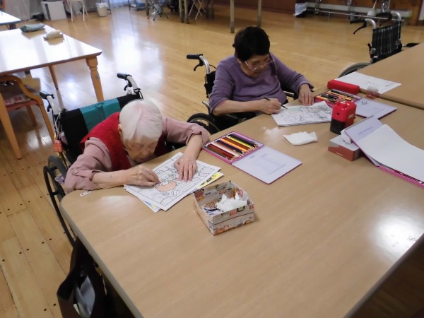本日は、本館・入居者様の塗り絵の作品をご紹介します!