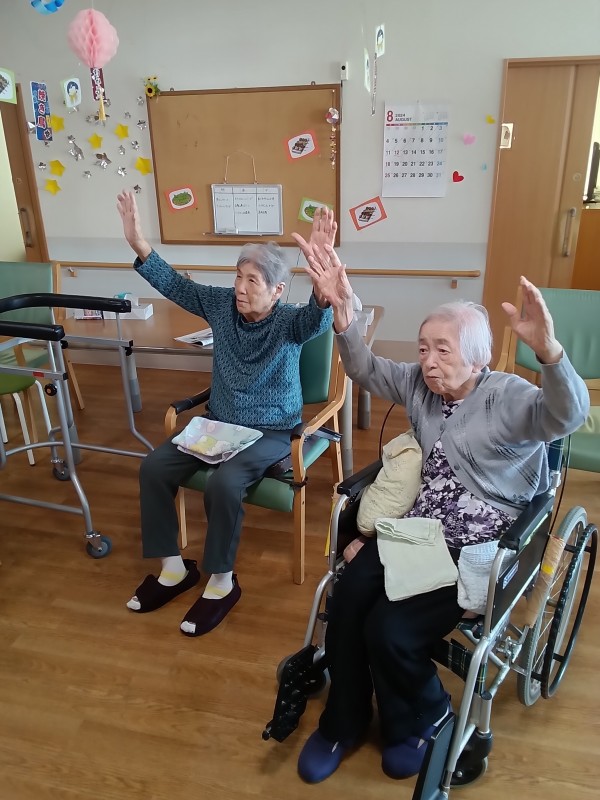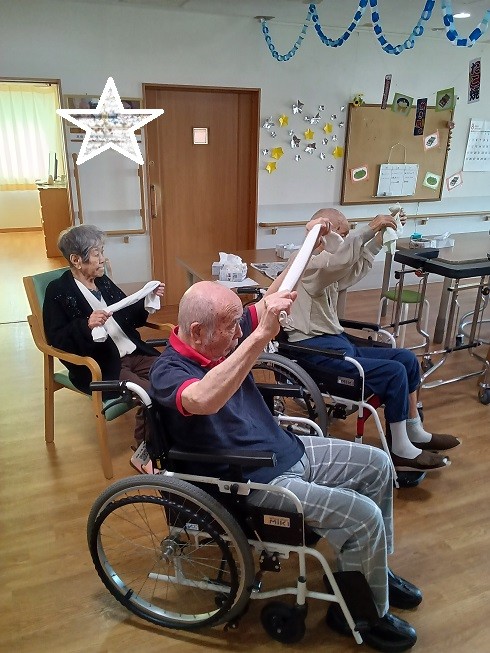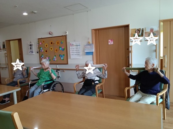 こんにちは! グループホームみんなの家・川崎野川南台です!! 訪問体操の先生が来て、「タオル体操」を教えてくれました(^^♪