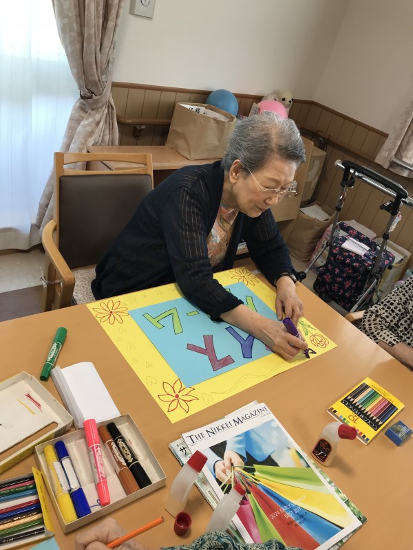 今月開催する納涼祭の飾り付けを、皆さんに手伝って頂きました(^o^)/
