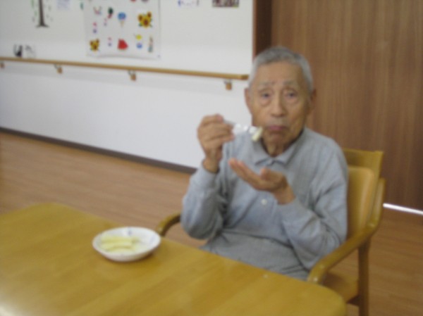 こんにちは! グループホームみんなの家・あきがせの介護ブログです! よろしくお願いいたします。 今日はおやつにいただきものの梨をいただいているご様子をお知らせいたします。